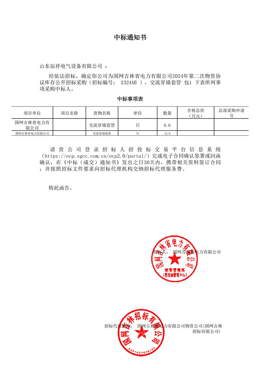2025.02.14 110kV瓷絕緣穿墻套管中標通知書